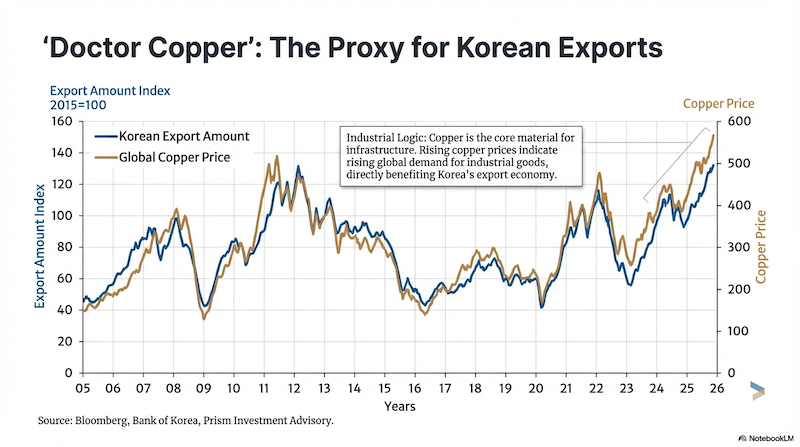 The price of copper has a direct and powerful correlation with the price of Korean exports, particularly high-value semiconductors. The relationship is so consistent it can be stated as a simple rule: