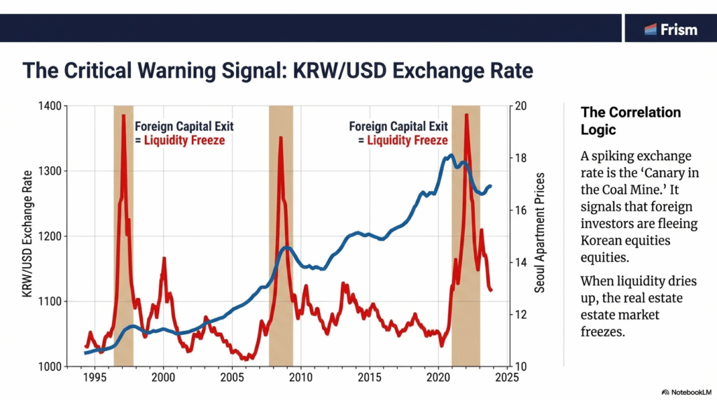 - Extreme Negative Sentiment: A sudden surge in the exchange rate reveals that global investors believe the “world is ending,” even if they are ultimately wrong. This powerful wave of pessimism, born in the stock market, inevitably spills over and poisons the psychology of the real estate market.